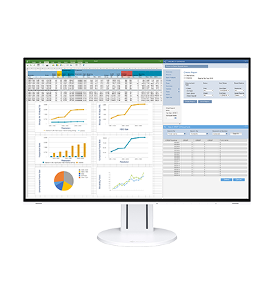 The EV2457 comes with a white cabinet option with matching cables. Compared to black, white monitors offer a refreshing change that brightens the office with style.